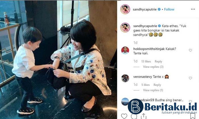 Sandhyca-tampak-sedang-memperlihatkan-isi-tasnya-pada-cucu-pertama-Presiden-Jokowi-Jan-Ethes.